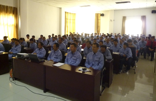 2012年4月29日星期日,天琛公司全體干職員工在辦公樓三樓會議室召開第十一個(gè)安全月“百日安全大練兵”動員大會。會議由公司安全生產(chǎn)部、綜合管理部組織召開,公司總經(jīng)理劉礦山在會上進(jìn)行百日安全大練兵活動的動員發(fā)言,公司副總經(jīng)理裴建華宣讀活動實(shí)施方案,同時(shí)動員大會邀請集團(tuán)運(yùn)行管理部倪宏山參加并發(fā)表講話。